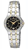 Quarzwerk, Kleid Uhr, poliert Gold-Ton Hände, Stick-Marker und Punktmarkierungen, Analog Datumsanzeige, poliert / gebürstet zweifarbigen Lünette mit schwarzen römischen Ziffern graviert und 24 Kristall Akzente, Edelstahl poliert Silber-Ton-Fall, Edelstahl poliert Gold-Ton-Krone, Edelstahl poliert Silber-Ton-Gehäuseboden, 30 Meter wasserdicht meters/100